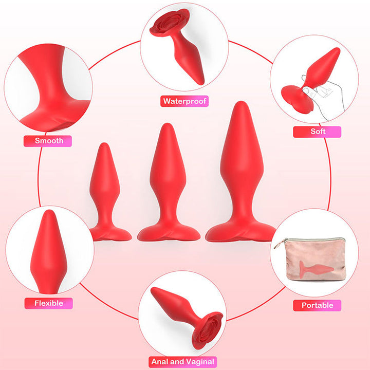 Made from smooth, body-safe silicone, these plugs glide effortlessly for an enjoyable experience. The romantic rose-shaped base adds a touch of elegance and doubles as a secure grip. Whether you're just starting or looking to enhance your play, this set supports gradual exploration for elevated pleasure.