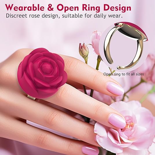 This mini rose ring features a stylish open ring design, allowing for an adjustable, comfortable fit for most finger sizes. Its delicate rose detail adds a touch of elegance and charm, making it not only a pleasure device but also a beautiful accessory.